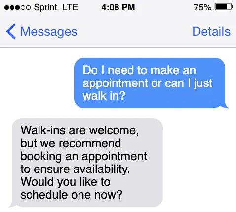 Your AI handles the back-and-forth, answering questions and booking clients via text.
